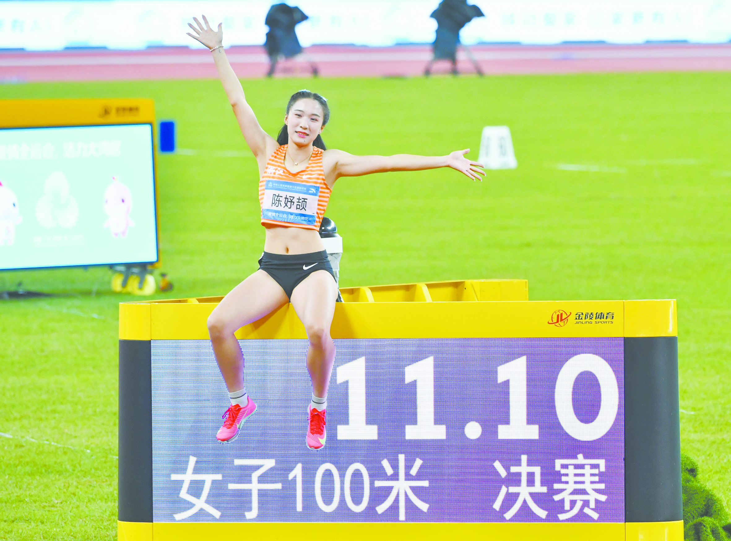 11月17日晚,十五运会田径女子100米决赛赛场,未满17岁、被誉为“最强中学生”的陈妤颉以11.10秒强势冲线,刷新亚洲青年纪录并摘金。当日,2000年出生的李泽洋将男子100米金牌收入囊中。在体操赛场,15岁的柯沁沁拿到5金2银,成为体操赛场上最耀眼的新星。在滑板赛场,13岁的邹明珂于最后一轮展现高难度动作,以0.32分的微弱优势反超12岁的孟令妍。值得一提的是,滑板4枚金牌中的3枚被青少年选手获得,摘得奖牌的12人中有9人尚未成年。在跳水赛场,“10后”小将李蕊汐、刘军熙等人组成的组合初露锋芒。在射击赛场,14岁的刘子扬为团队夺冠立下赫赫战功……这些年轻的面孔让人感受到中国体育的新生代力量。