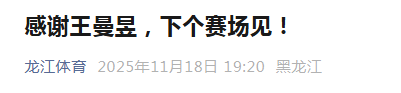 赛后,王曼昱感觉身体明显不适,经队医对王曼昱的伤势进行全面评估,认为其不再适合参加接下来的比赛。本着对运动员职业生涯高度负责的态度,黑龙江代表团与教练组慎重研究后决定,在接下来的团体赛半决赛及后续比赛中不再安排王曼昱上场,同时安排她返回北京进行进一步检查与康复。