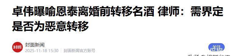 封面新闻——2025年11月18日——卓伟曝喻恩泰离婚前转移名酒 律师:需界定是否为恶意转移